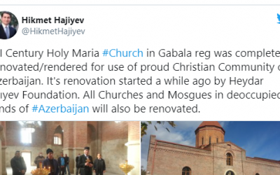 Azərbaycan Prezidentinin köməkçisi Hikmət Hacıyev Qəbələ rayonundakı kilsənin bərpası barədə paylaşım edib