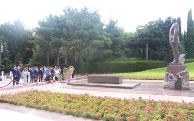 Bakı Beynəlxalq Multikulturalizm Mərkəzinin təşkil etdiyi “Bakı Mədəniyyətlərarası Gənclər Forumu: Dinlərarası dialoqdan fəaliyyətə doğru” adlı IX Beynəlxalq Multikulturalizm Yay Məktəbinin iştirakçıları iyulun 15-də Fəxri xiyabanda xalqımızın ümummilli lideri, müasir müstəqil dövlətimizin memarı və qurucusu Heydər Əliyevin xatirəsini yad edib, məzarı önünə gül dəstələri qoyublar.