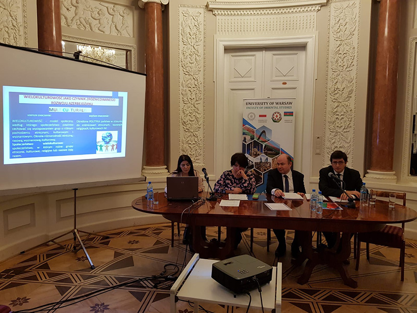 Varşavada “Azərbaycan – Tarix, Cəmiyyət, Mədəniyyət” adlı elmi konfrans keçirilib. Konfrans Azərbaycan Respublikasının Polşadakı səfirliyinin dəstəyi və Varşava Universitetində fəaliyyət göstərən Azərbaycanşünaslıq Mərkəzinin təşkilatçılığı ilə baş tutub. Konfransda Azərbaycanın Polşadakı fövqəladə və səlahiyyətli səfiri Həsən Həsənov, Polşa Xarici İşlər Nazirliyinin Şərq Departamentinin müavini, eyni zamanda ölkəmizə təyin edilmiş səfiri Rafal Poborski, Varşava Universiteti Şərqşünaslıq fakültəsinin dekanı Pyotr Taraxa, Azərbaycan Respublikası Beynəlxalq İnkişafa yardım Agentliyinin (AİDA) müşaviri Gülnarə Ağalarova və ikinci katibi Eltay Aslanov, Bakı Beynəlxalq Multikulturalizm Mərkəzinin layihəsi çərçivəsində “Azərbaycan multikulturalizmi” fənnini Polşanın Vrotslav Universitetində tədris edən müəllimə İlahə Kərimova, AMEA Tarix İnstitutunun əməkdaşı Aynur Bəşirli, ADA Universitetinin yardımçı professoru Ceyhun Rzayev, Azərbaycanşünaslıq Mərkəzinin əməkdaşları Nərgiz Axundova, Şəhla Kazımova, eləcə də, Polşa universitetlərinin professorları, Azərbaycanın Polşadakı səfirliyinin nümayəndələri və tələbələr iştirak ediblər.