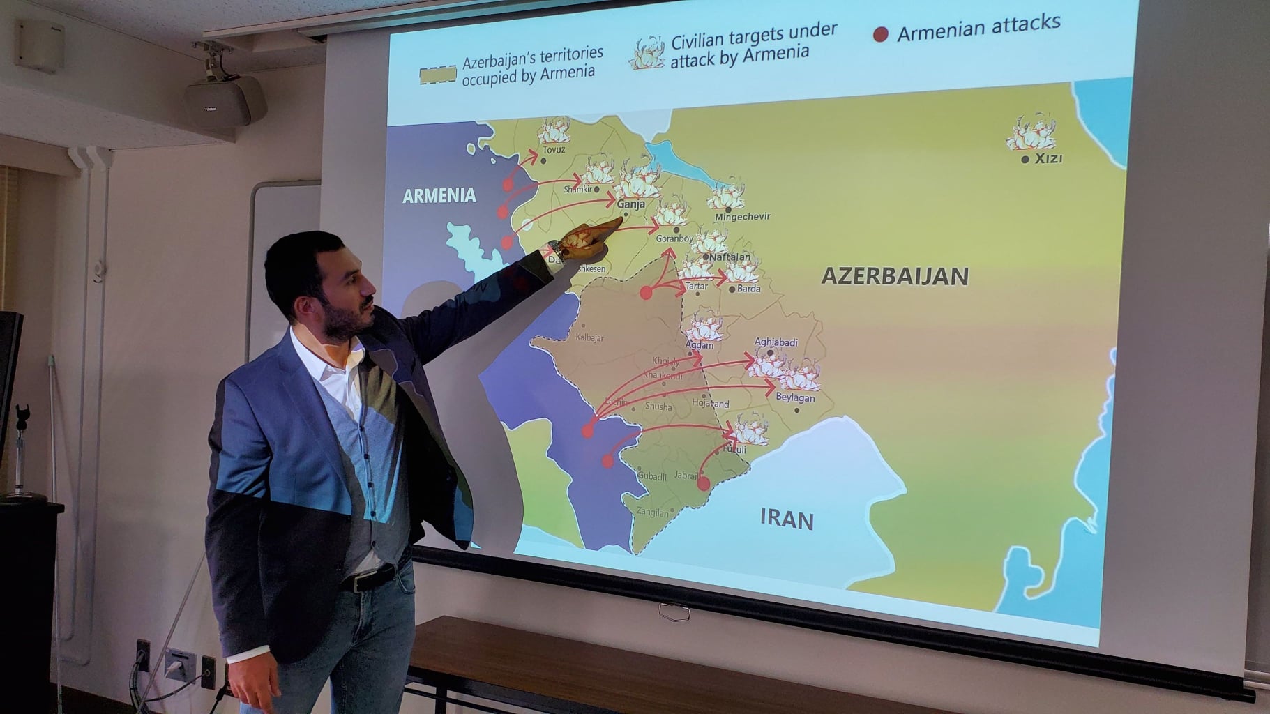 Noyabrın 2-də Yaponiyanın ən nüfuzlu beş universitetindən biri olan Hokkaydo Universitetində "Azərbaycanda Multikulturalizm Modeli" ilə bağlı müntəzəm keçirilən növbəti dərsin mövzusu Dağlıq Qarabağ münaqişəsinə, Azərbaycanın Bərdə, Gəncə, Tərtər rayonlarında ermənilərin dinc əhaliyə qarşı törətdiyi vəhşiliklərə həsr olunmuşdur. Qeyd edək ki, Yaponiya Dövlət təqaüdçüsü Əlibəy Məmmədov tərəfindən aparılan dərslər Bakı Beynəlxalq Multikulturalizm Mərkəzi ilə Hokkaydo Avroasiya Araşdırmalar Mərkəzinin razılığı əsasında keçirilir. Ə.Məmmədov yaponiyalı tələbələrə Azərbaycan xalqının qanuni və tarixi ərazilərinin erməni işğalçılarından azad edilməsi uğrunda Vətən müharibəsinə başlaması haqqında ətraflı məlumat vermişdir. O qeyd etmişdir ki, 30 ilə yaxın bir dövrdə Azərbaycan xalqı sülh tərəfdarı olsa da, Ermənistan rəhbərliyi həmişə sülh danışıqlarını pozmuş və dəfələrlə Azərbaycanın qanuni sərhədlərində təxribatla məşğul olmuşdur. Azərbaycan torpaqlarından işğalçı ordunun çixarılması ilə bağlı BMT- nin 4 qətnaməsini bu günə kimi yerinə yetirməmişdir. Sentyabrın 27- də yenə də ərazilərimiz atəşə tutulması nəticəsində, Azərbaycan Ordusu işğalçılara qarşı əks hücuma keçmiş və düşmənə ağır zərbə vuraraq, işğal altında olan torpaqlarımızın böyük hissəsini azad etmişdir. Cəbhədə məğlub olan düşmən dinc əhaliyə qarşı ağır silahlardan istifadə edərək, Azərbaycanın döyüş bölğəsindən uzaqda yerləşən Gəncə, Bərdə, Tərtər rayonlarını qadağan olunmuş silahlarla raket atəşinə tutmuşdur. Nəticədə Gəncədə 26, Bərdədə 27, Tərtərdə 17 nəfər dinc insan qətlə yetirilmişdir. Dərs zamanı tələbələrin mövzu ilə bağlı sualları cavablandırılmış, erməni faşizmi pislənilmişdir.
