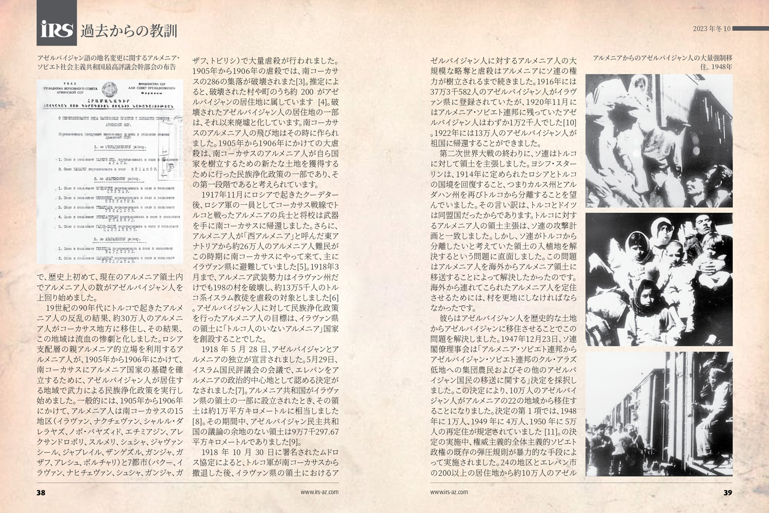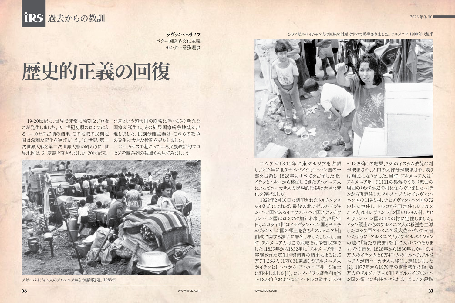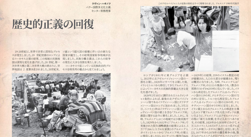 Bakı Beynəlxalq Multikulturalizm Mərkəzinin icraçı direktoru Rəvan Həsənovun "İRS" jurnalında yapon dilində məqaləsi dərc edilb. Məqalədə Ermənistanın Azərbaycanın maddi-mənəvi irsinə qarşı törətdiyi vandalizm aktı, azərbaycanlılara qarşı edilən etnik təmizləmə siyasəti barədə ətraflı məlumat verilir.