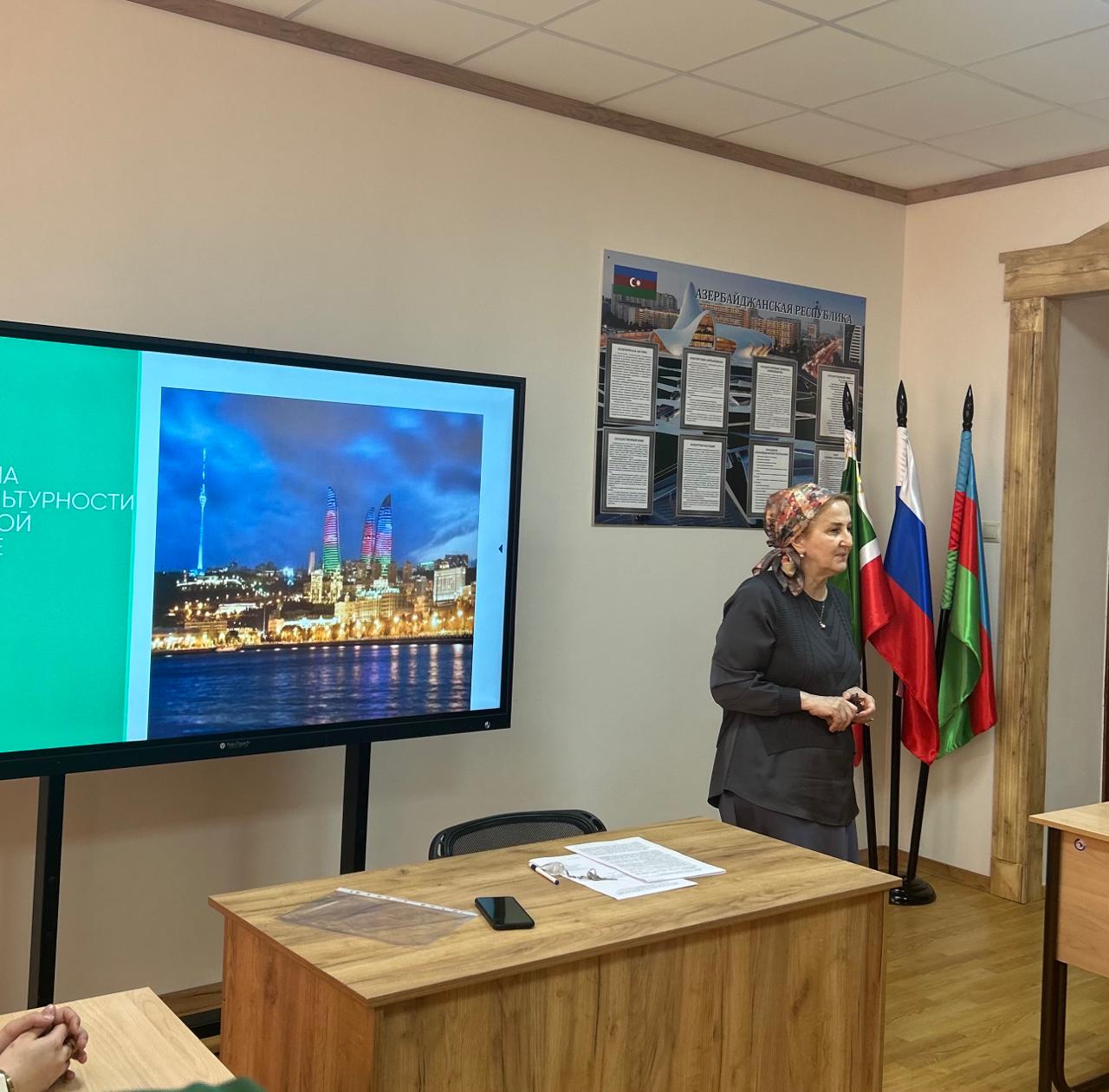 Çeçenistan Dövlət Pedaqoji Universitetinin Azərbaycan Mədəniyyəti Mərkəzində multikultural təhsil elmi laboratoriyasının müdiri, fəlsəfə elmləri doktoru, professor Maret Betilmerzaevanın “Müasir dünyada multikulturalizm problemləri” kursu çərçivəsində silsilə mühazirələrdən birincisi keçirilib. Kursda iştirak edən Filologiya, Tarix və Hüquq İnstitutunun tələbələri müasir çoxölçülü dünyada yaşamağa hazır, multikultural şəxsiyyətin formalaşdırılması problemlərinin müzakirəsində fəal iştirak ediblər.