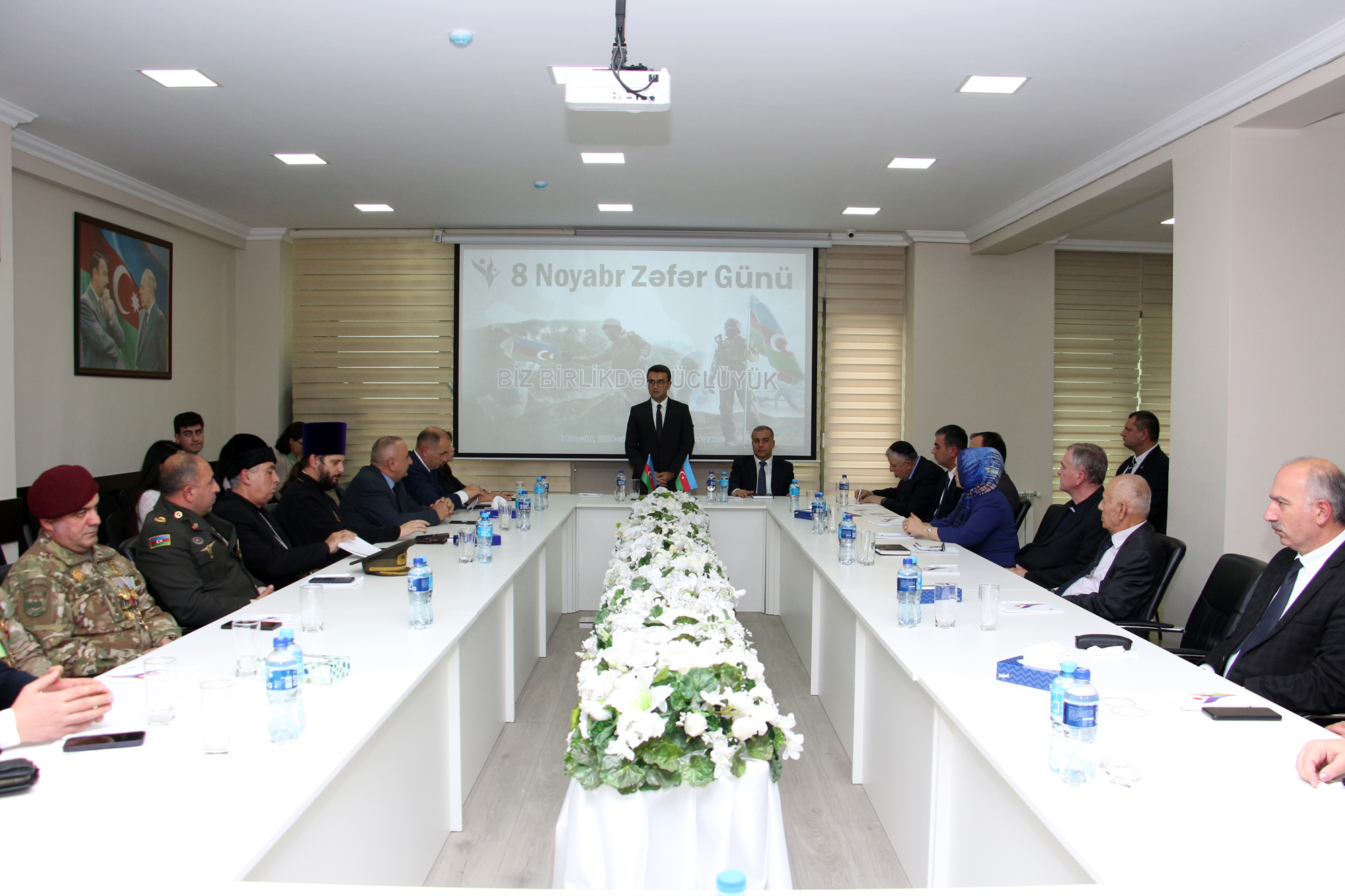 Tədbirdə çıxış edən BBMM-in icraçı direktoru Rəvan Həsənov bildirib ki, 44 günlük Vətən müharibəsində qazanılan Zəfər dövlətçilik tariximizin ən şanlı səhifələrindən biridir. Azərbaycan Müzəffər Ali Baş Komandan, Prezident İlham Əliyevin liderliyi ilə son 200 ilin ən böyük qələbəsini qazandı. Bu qələbə hər bir azərbaycanlı üçün sonsuz qürur mənbəyidir və tariximizdə əbədi qalacaq. Zəfər Günü Azərbaycanın dövlət müstəqilliyinin, suverenliyinin, gücünün və qüdrətinin rəmzidir. Rəvan Həsənov diqqətə çatdırıb ki, Vətən müharibəsindəki Zəfərimizin arxasında duran ideya birlik, qardaşlıq idi. Çünki torpaqlarımızın azadlığı, ölkəmizin ərazi bütövlüyü və suverenliyi uğrunda mübarizədə dinindən, dilindən, mədəniyyətindən asılı olmayaraq, hər kəs “Dəmir yumruq” ətrafında birləşdi. Təsadüfi deyil ki, Şanlı Zəfərimizdən sonra Qarabağda, Şuşada keçirilən ilk mədəni tədbir xalqların birliyini tərənnüm edən “Xarı Bülbül” festivalı oldu. Bu gün Zəfər qazanmışıq, suverenliyimizi tam bərpa etmişik, lakin Azrbaycanın ərazi bütövlüyünü pozmaq istəyən qüvvələr yenə də öz məkrli mövqelərindən geri durmurlar. Bu səbəbdən Azərbaycan Respublikasının vətəndaşları dinindən, dilindən, etnik mənsubiyyətindən asılı olmayaraq öz həmrəyliyini daim qorumalıdır.