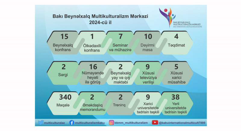 Bakı Beynəlxalq Multikulturalizm Mərkəzinin 2024-cü il ərzində fəaliyyəti barədə bütün məlumatlar Mərkəzin http://multikulturalizm.gov.az rəsmi saytında, feysbuk, tvitter, yutub, instaqram səhifələrində 3 dildə (azərbaycan, rus və ingilis) yayımlanıb. Cari il ərzində Azərbaycan multikulturalizmi ilə bağlı, eyni zamanda BBMM-in təşkilatçılığı ilə keçirilən beynəlxalq tədbirlər haqda ABŞ, Türkiyə, Almaniya, Misir, Yaponiya, Niderland, Mərakeş, İspaniya, Çin, İordaniya, Pakistan, Nigeriya, Gürcüstan, Rusiya, Fransa, Ermənistan, Rumıniya, İsrailin xəbər saytlarında məqalələr, xəbərlər, habelə qeyd olunan ölkələrin televiziyalarında müxtəlif dillərdə süjetlər yer alıb.