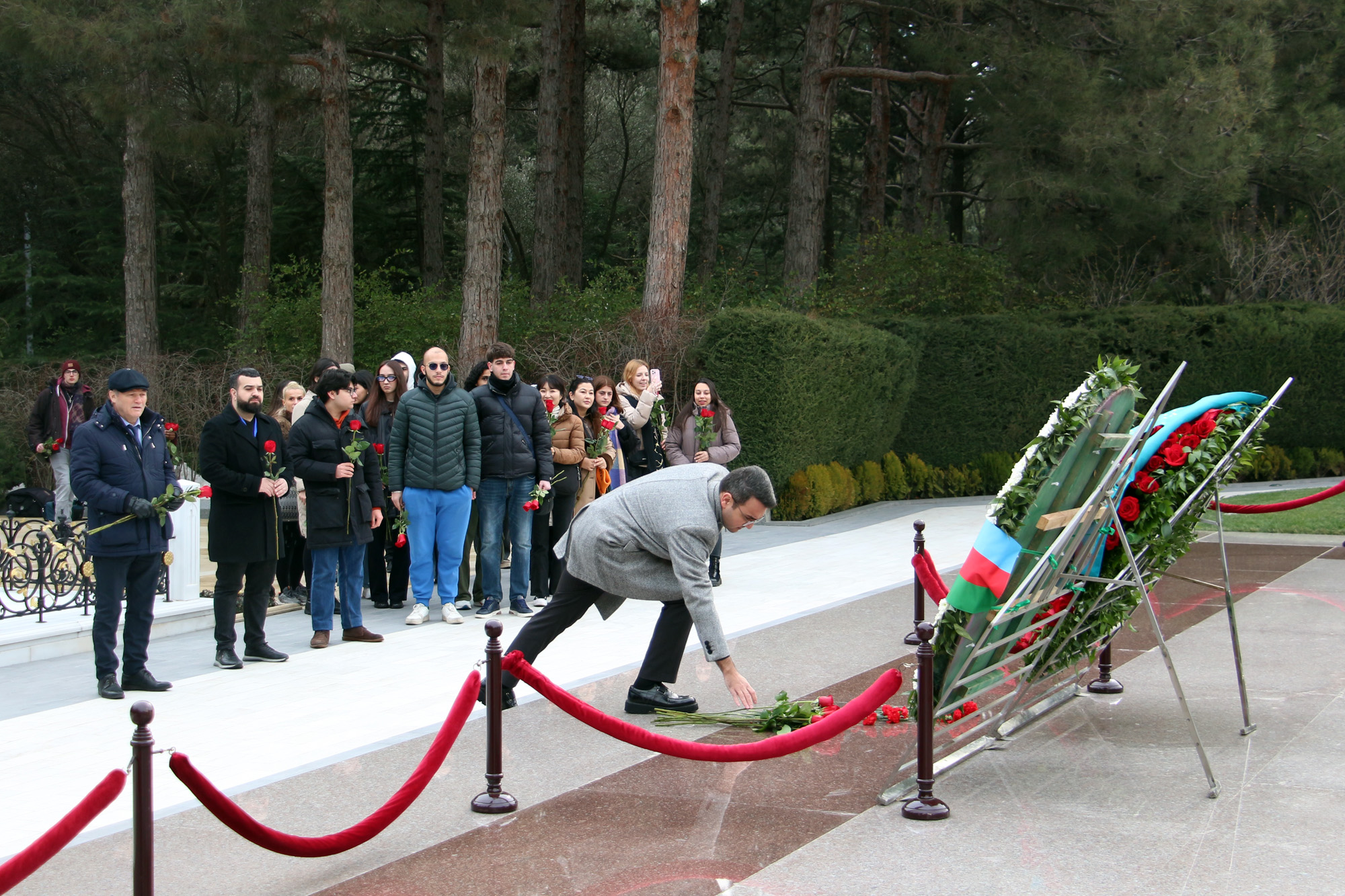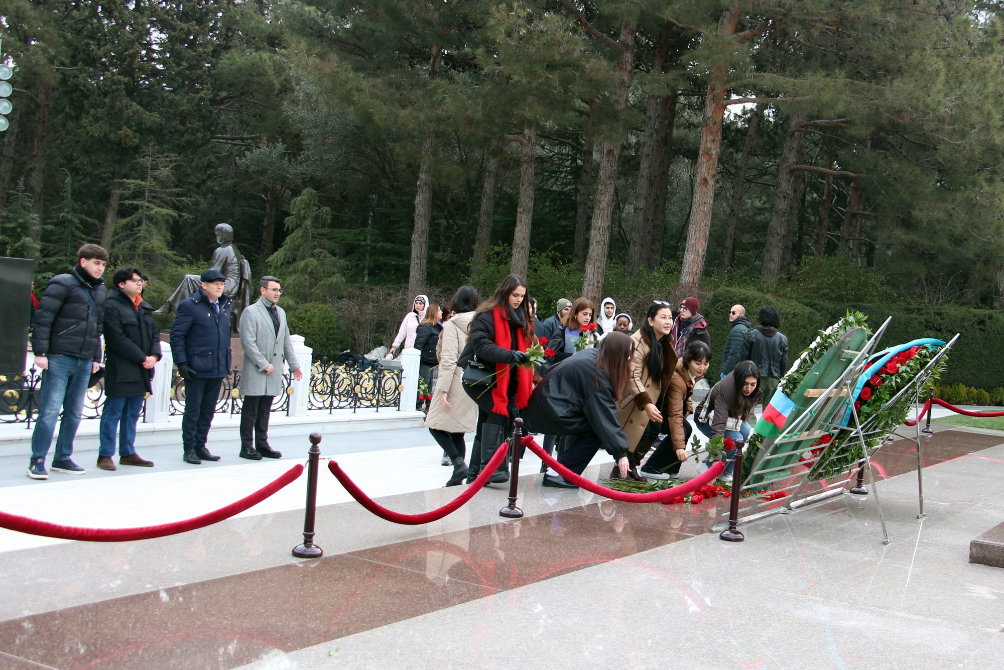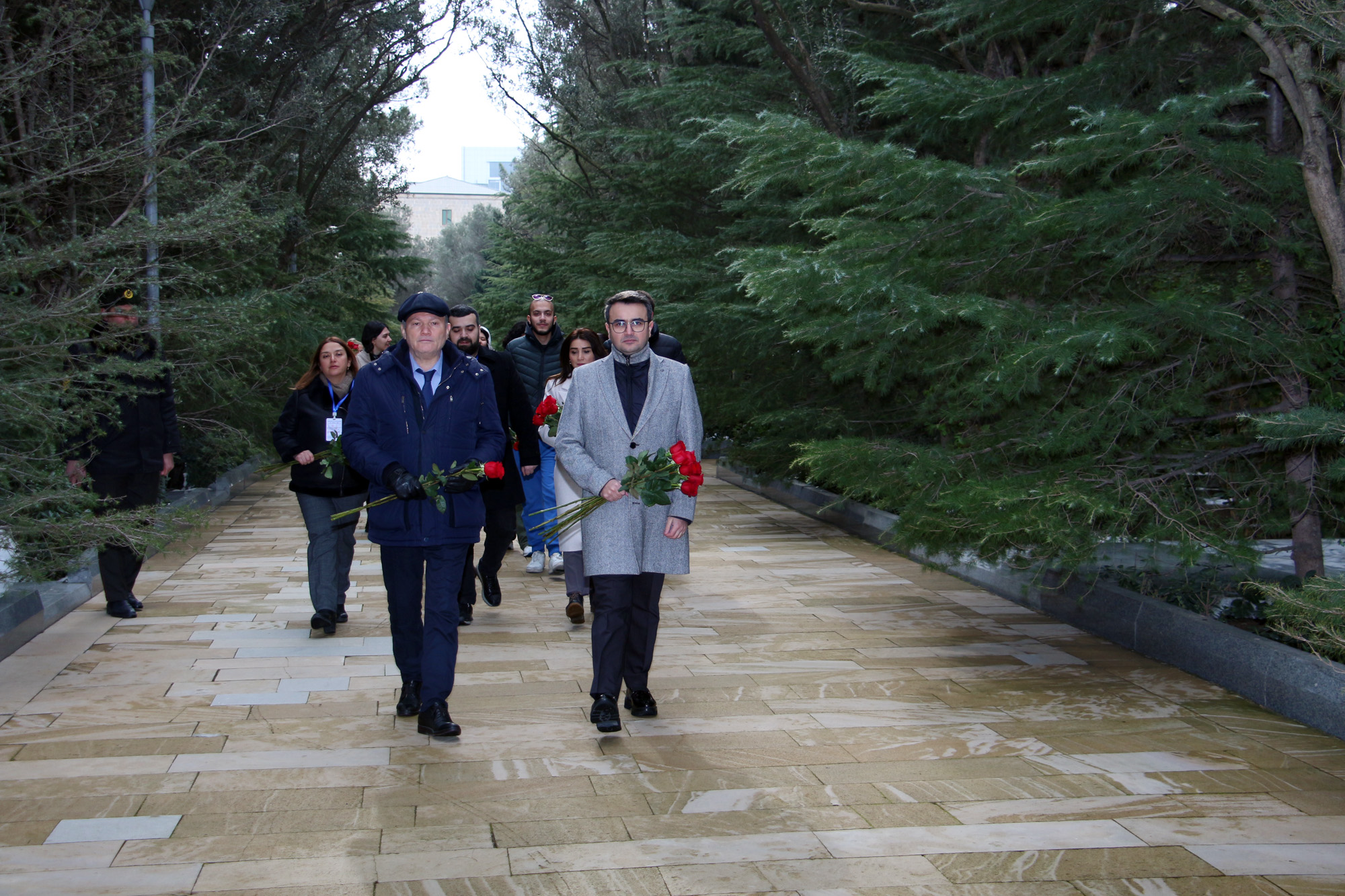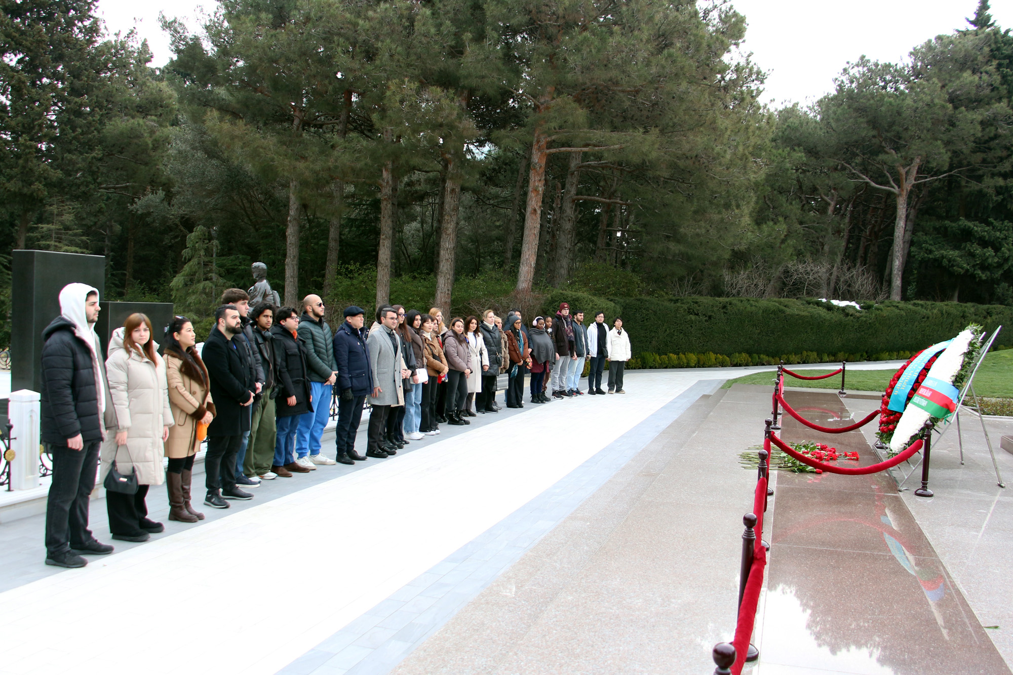 Məktəb iştirakçıları əvvəlcə Fəxri xiyabana gələrək xalqımızın Ümummilli Lideri, müasir müstəqil Azərbaycan dövlətinin memarı və qurucusu Heydər Əliyevin xatirəsini dərin ehtiramla yad edib, məzarı önünə tər güllər düzüblər. Görkəmli oftalmoloq-alim, akademik Zərifə xanım Əliyevanın da məzarı ziyarət olunub, xatirəsi ehtiramla anılıb. Sonra Şəhidlər xiyabanı ziyarət edilib, ölkəmizin azadlığı və suverenliyi uğrunda mübarizədə canlarından keçmiş qəhrəman Vətən övladlarının xatirəsi anılıb, məzarları üzərinə tər qərənfillər qoyulub.