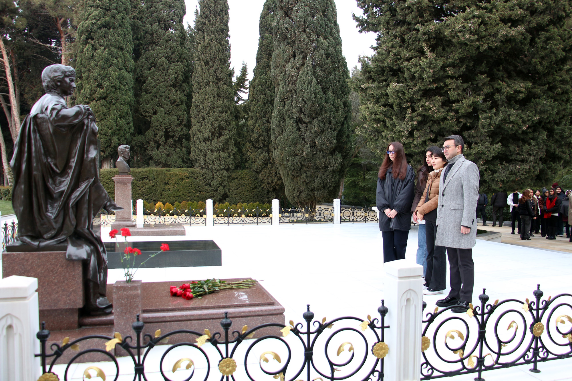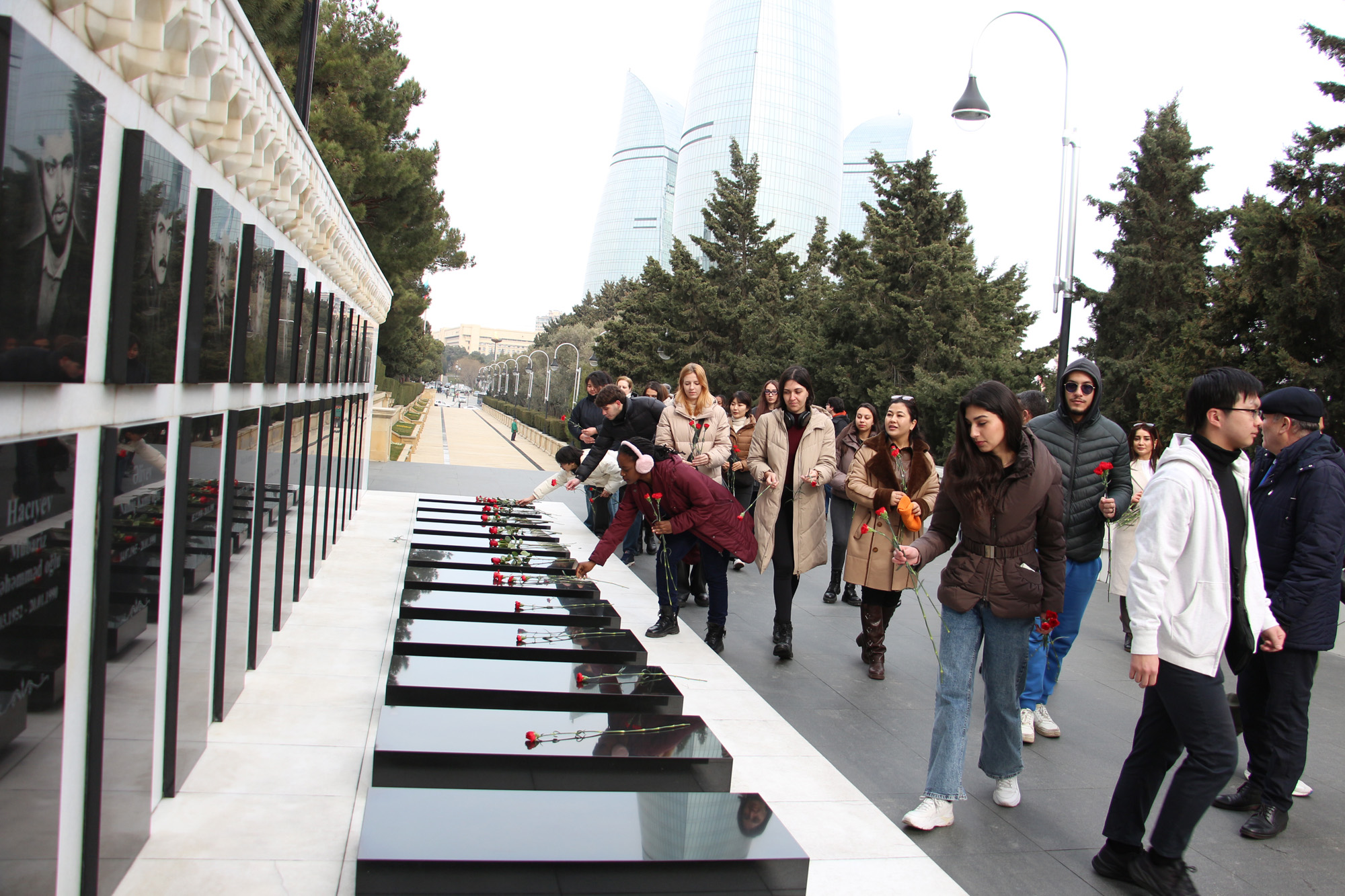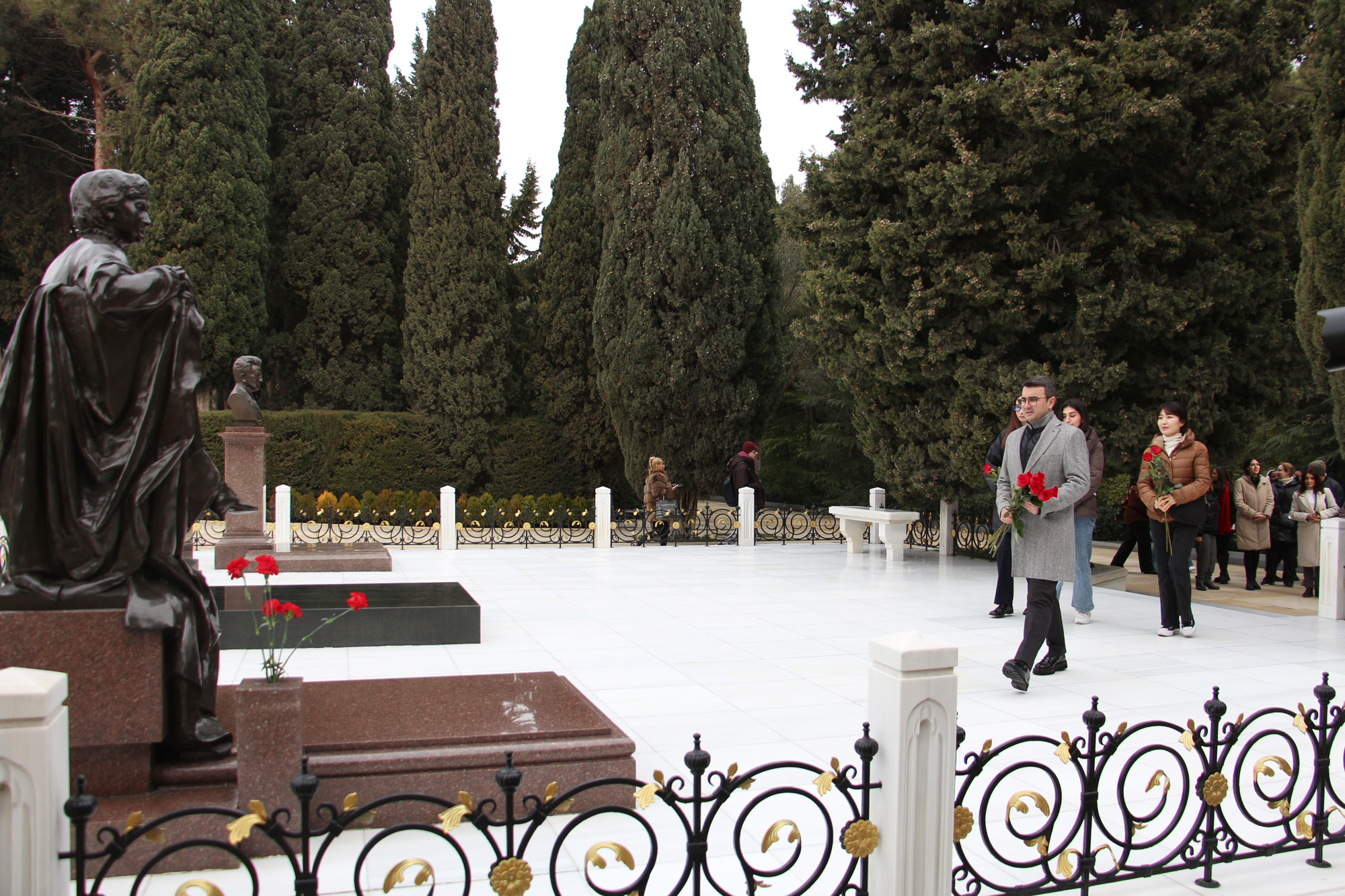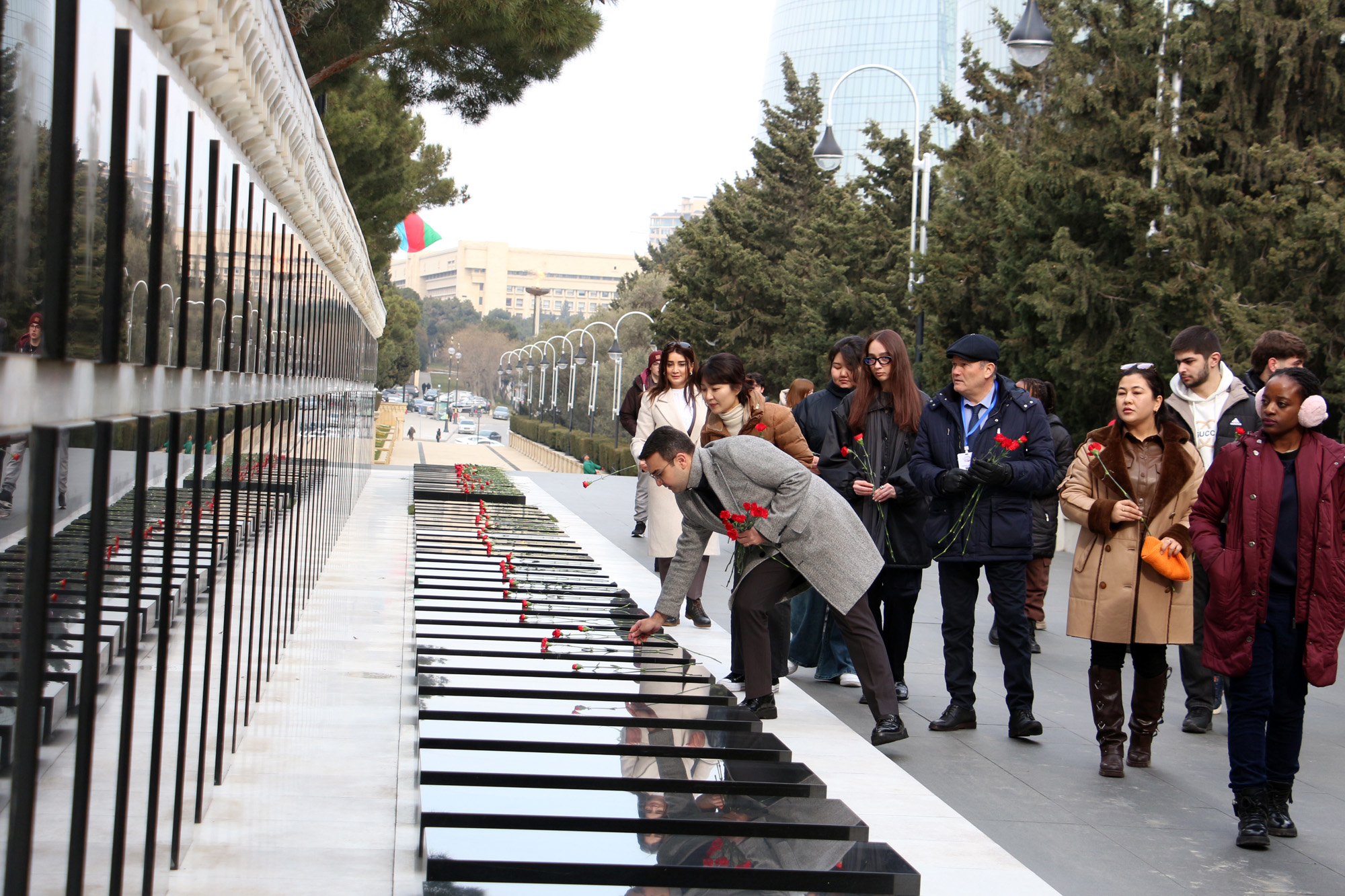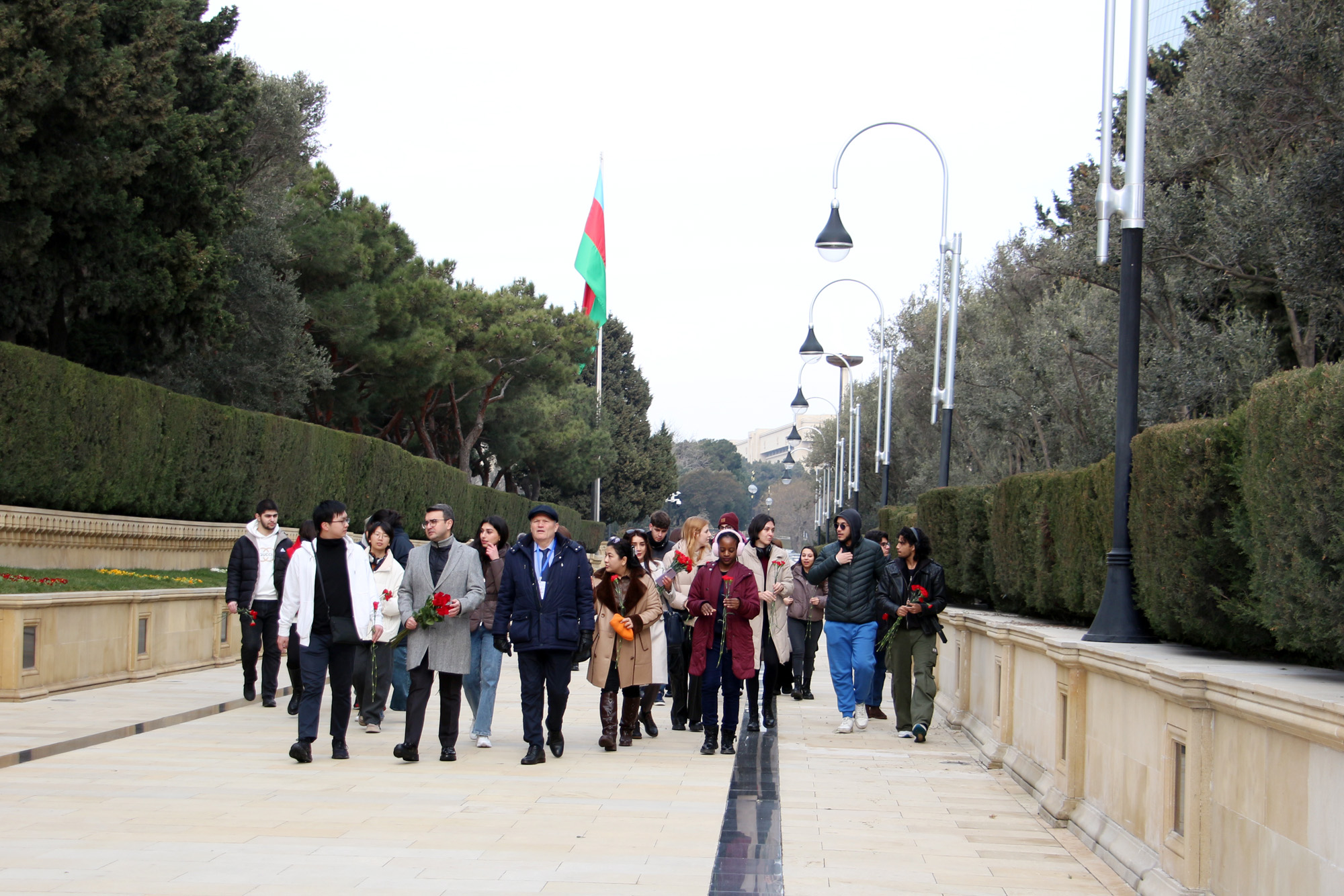 Məktəb iştirakçıları əvvəlcə Fəxri xiyabana gələrək xalqımızın Ümummilli Lideri, müasir müstəqil Azərbaycan dövlətinin memarı və qurucusu Heydər Əliyevin xatirəsini dərin ehtiramla yad edib, məzarı önünə tər güllər düzüblər. Görkəmli oftalmoloq-alim, akademik Zərifə xanım Əliyevanın da məzarı ziyarət olunub, xatirəsi ehtiramla anılıb. Sonra Şəhidlər xiyabanı ziyarət edilib, ölkəmizin azadlığı və suverenliyi uğrunda mübarizədə canlarından keçmiş qəhrəman Vətən övladlarının xatirəsi anılıb, məzarları üzərinə tər qərənfillər qoyulub.