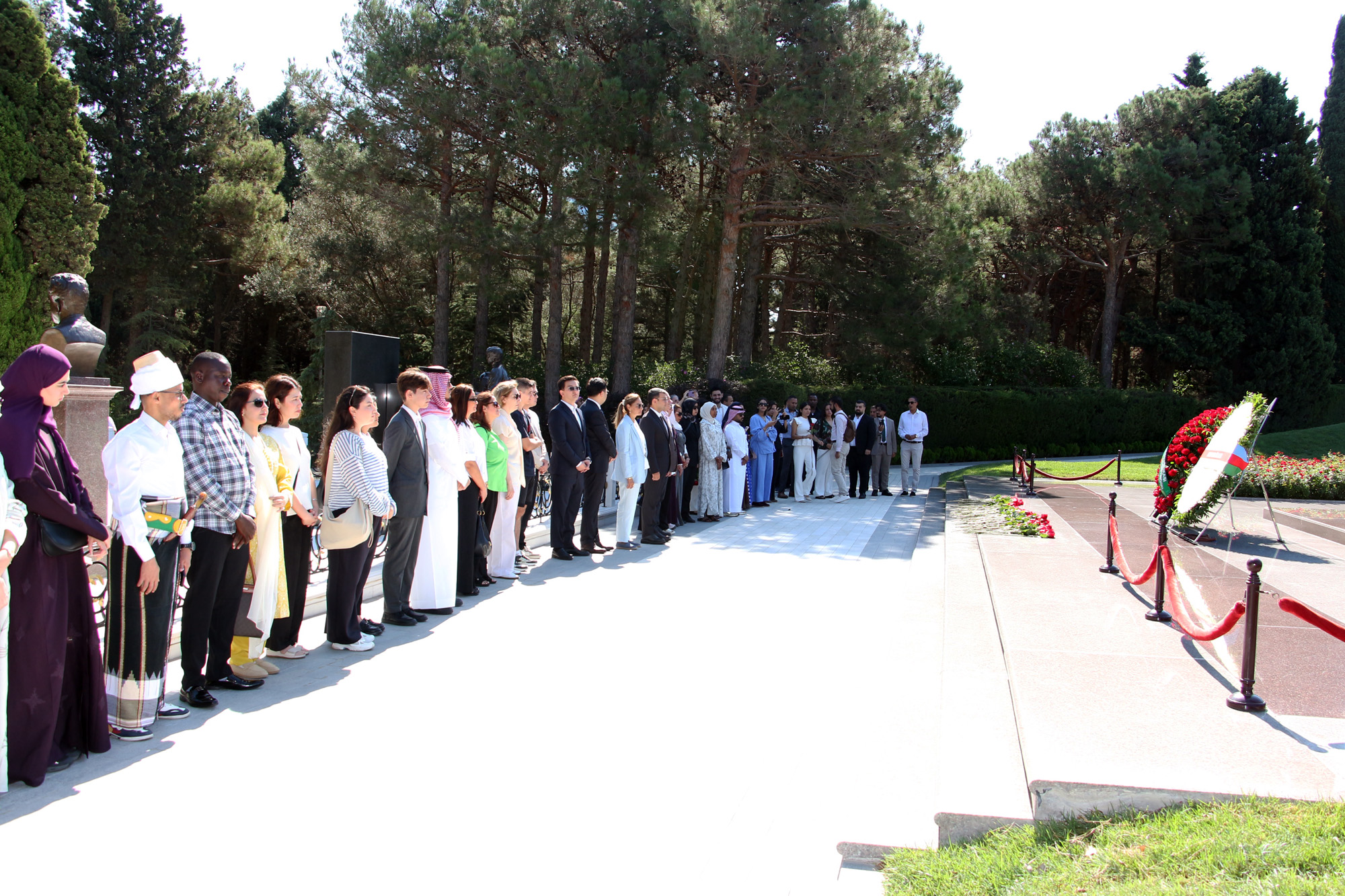 II Beynəlxalq Multikulturalizm Gənclər Forumunun iştirakçıları Ulu Öndər Heydər Əliyevin məzarını və Şəhidlər xiyabanını ziyarət ediblər. Forum iştirakçıları Fəxri xiyabana gələrək, xalqımızın Ümummilli Liderinin məzarını ziyarət edib, məzarı önünə gül dəstələri qoyub. Ulu Öndərin ömür-gün yoldaşı, görkəmli oftalmoloq-alim, akademik Zərifə xanım Əliyevanın da məzarı üzərinə gül dəstələri düzülüb, əziz xatirəsi ehtiramla anılıb.