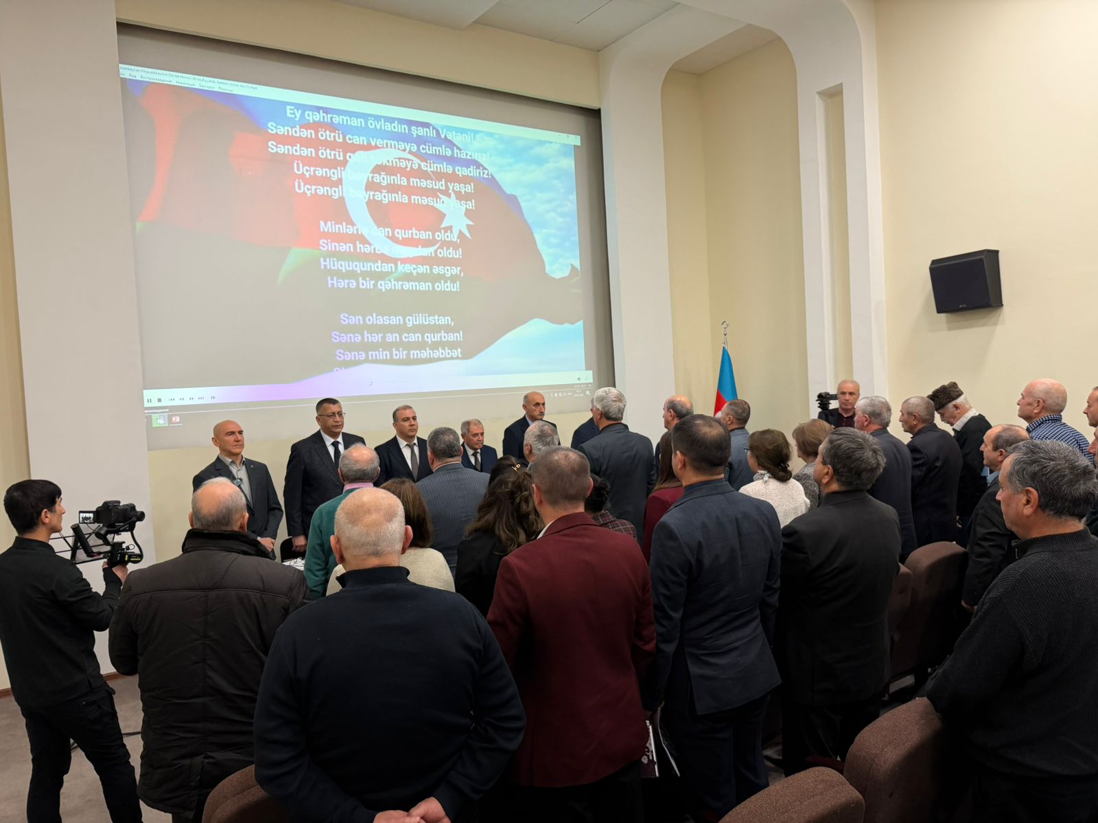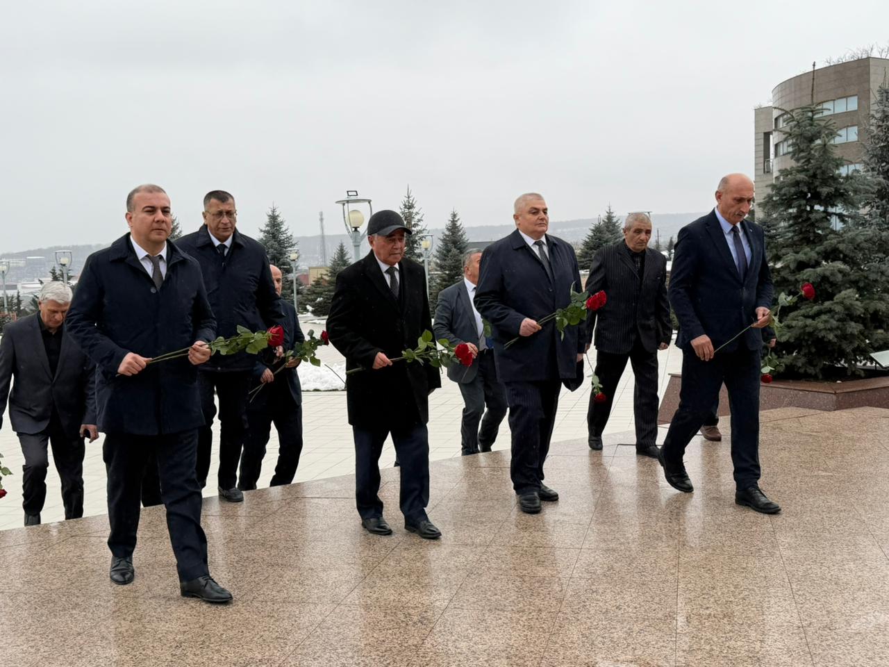 Azərbaycan Respublikasının Dövlət Himninin səsləndirilməsi ilə başlayan tədbirdən öncə Ülü Öndər Heydər Əliyevin abidəsinin önünə tər güllər düzülüb.