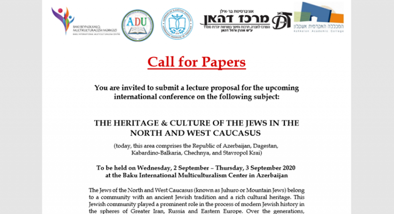 On September 2-3, 2020, an international conference on the theme of “Heritage and culture of the Jews of the Northern and Eastern Caucasus and the South Caucasus” will be held in Baku.