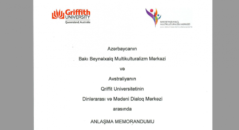 A memorandum of understanding has recently been signed between the BIMC and Griffith University, Australia. According to the memorandum, cooperation relations will be realized through the Center for Interfaith and Cultural Dialogue at the University. The memorandum provides for the implementation of joint projects on scholarly interaction, cultural interchange, cooperative research and other forms of cooperation in the field of education. The memorandum of understanding was signed by BIMC Executive Director Ravan Hasanov and Professor Sarah Todd, Vice President of Griffith University, Australia.