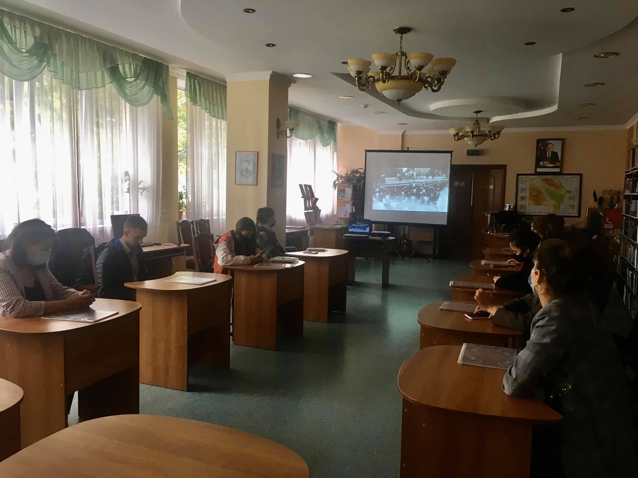 The event was hosted by the library named after Samad Vurgun in Kyiv. Addressing the event, Marina Goncharuk, the teacher of the optional course and a representative of Baku International Multiculturalism Center in Ukraine, said: “Azerbaijan has always been a tolerant and multicultural country, where the rights of representatives of different ethnicities and religions are provided and respected at a high level. I’d like to note that Azerbaijan is a country which has suffered from Armenian occupation and today, when Azerbaijan is restoring its territorial integrity, Ukraine stands with Azerbaijan and supports its efforts to reinstate its internationally‑recognized right.”