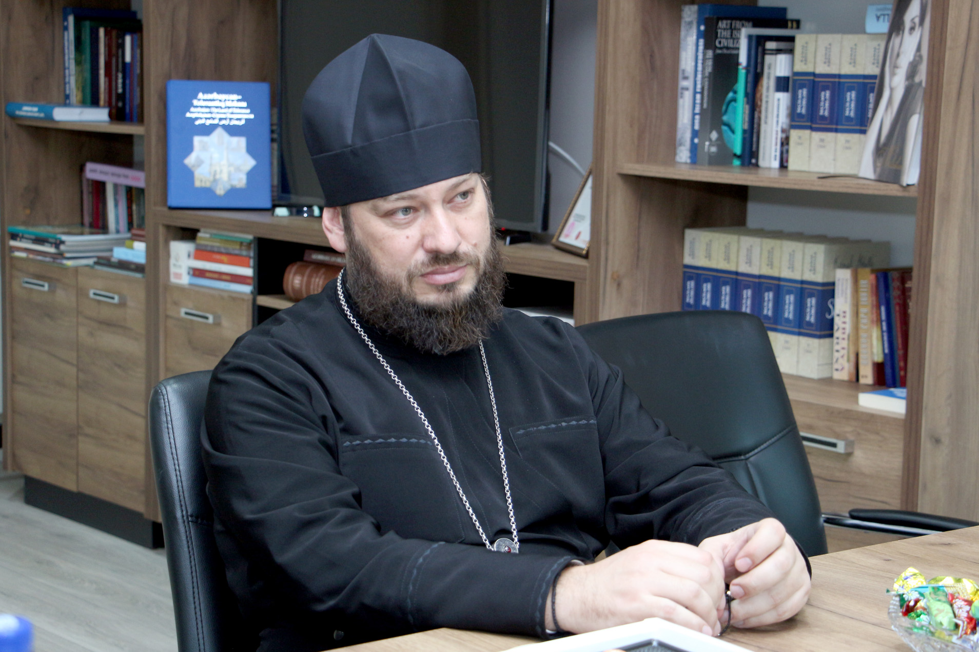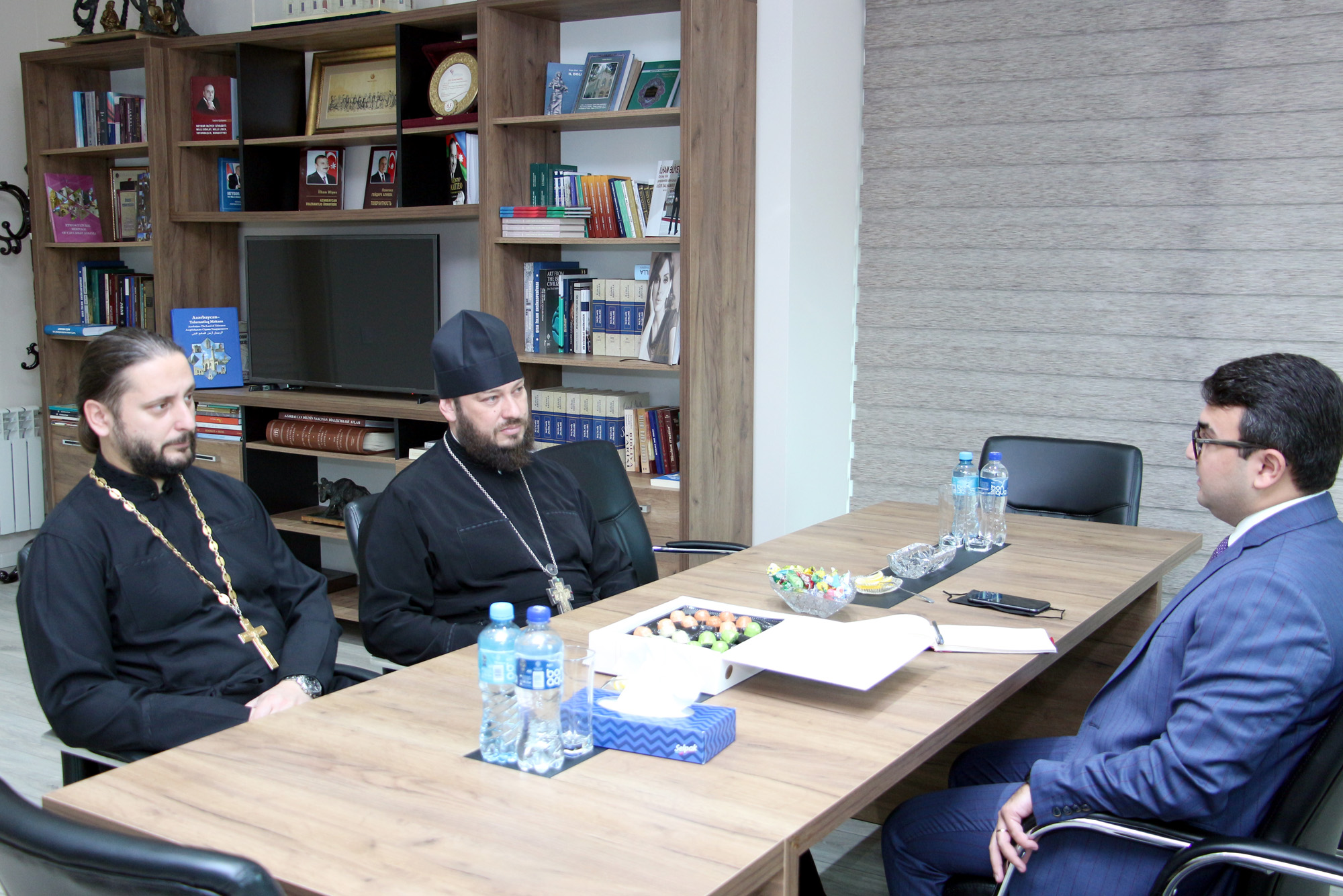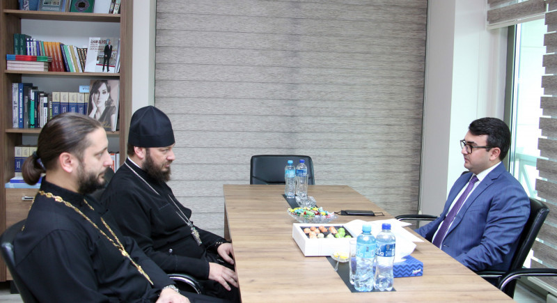 Ravan Hasanov, executive director of Baku International Multiculturalism Center, met with Archimandrite Alexiy Nikonorov, secretary of the Baku Eparchy of the Russian Orthodox Church. At the meeting, R. Hasanov provided the guest with extensive information about the activities of the Center and the projects implemented. During the meeting, discussions were held on the development of mutual cooperation.