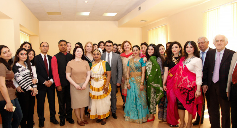 Azerbaijan is one of the leading countries both in socio-political and cultural fields. Azerbaijan enjoys cultural cooperation with the Republic of India, like with other countries. It was proved by an event held at Baku Music Academy after Uzeyir Hajibeyli a few days ago. The creative and interactive meeting on the theme “Oriental Music and Multicultural Values” jointly arranged by the Embassy of India, Baku International Centre of Multiculturalism and Baku Music Academy after Uzeyir Hajibeyli has been highly appraised. The leader of the project and announcer of the event was Professor Mina Hajiyeva, the receiver of the CIS Inter-parliamentary Association badge “For the Merits in the Development of Culture and Art”. First, to open the event the floor was given to the Vice-rector for Educational Issues of Baku Music Academy after Uzeyir Hajibeyli, Honoured teacher, Candidate of Pedagogical Sciences, Professor Narmina Guliyeva. Ms.Guliyeva welcomed Mr. Ambassador, the Acting Executive Director of Baku International Centre of Multiculturalism Ravan Hasanov, the Indian dancer Ms. Nisha Govindan, who has demonstrated a wonderful dance, and other guests, and expressed her desire to often see them at Baku Music Academy. Further, the Extraordinary and Plenipotentiary Ambassador of the Republic of India to the Republic of Azerbaijan Mr. Sanjay Rana spoke and stated that he also enjoys being at Baku Music Academy and among the musicians. Mr. Ambassador gave information on Indian music, Indian ragas and noted that they have brought to us the Indian Music Oxford Encyclopedia in 3 volumes, Indian ragas (in disc), the Indian national musical instruments sarangi, sarode and santoor as gifts. At her presentation on Indian music, Indian musical instruments, the MA student of Baku Music Academy, musician Alizadeh Konul stated that as one of the most ancient countries of the world, India is ahead of the most ancient civilizations and enjoys a rich historical-cultural legacy. Solmaz Hasanova gave information on Aarti, Indian dances and demonstrated a wonderful dance. Finally, the MA students of Baku Music Academy jointly presented a flash mob consisting of an Indian dance. This dance was warmly applauded by the guests and audience. In the end, on behalf of Baku Music Academy the guests were given the presents from the Azerbaijani people to the Indian people – Professor Mina Hajiyeva’s books – on the founder of Azerbaijani professional music Uzeyir Hajibeyli, on Gara Garayev who raised this music to the international level and on the philosophical realm of Firangiz Alizadeh music – in 3 volumes in Azerbaijani, Russian and English, as well as the books on Azerbaijani mugham, which is the confidante of the Indian ragas.